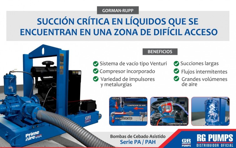 Este sistema permite eliminar grandes volúmenes de aire en la succión de las bombas centrifugas durante el proceso de cebado, resultando una buena opción en aplicaciones de cebado crítico.